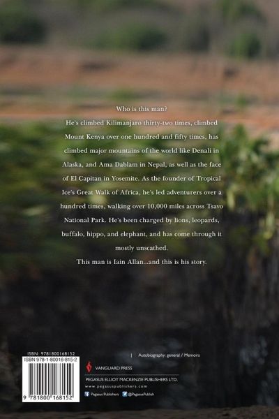 Who is this man? He's climbed Kilimanjaro thirty-two times, climbed Mount Kenya over one hundred and fifty times, has climbed major mountains of the world like Denali in Alaska, and Ama Dablam in Nepal, as well as the face of El Capitan in Yosemite. As the founder of Tropical Ice's Great Walk of Africa, he's led adventurers over a hundred times, walking over 10,000 miles across Tsavo National Park. He's been charged by lions, leopards, buffalo, hippo, and elephant, and has come through it mostly unscathed. This man is Iain Allan...and this is his story.