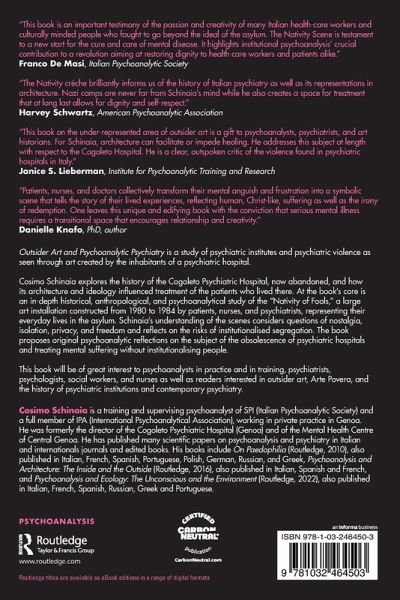 Cosimo Schinaia is a training and supervising psychoanalyst of SPI (Italian Psychoanalytic Society) and a full member of IPA (International Psychoanalytical Association), working in private practice in Genoa. He was formerly the director of the Cogoleto Psychiatric Hospital (Genoa) and of the Mental Health Centre of Central Genoa. He has published many scientific papers on psychoanalysis and psychiatry in Italian and international journals and edited books. His books include On Paedophilia (Routledge, 2010), also published in Italian, French, Spanish, Portuguese, Polish, German, Russian and Greek, Psychoanalysis and Architecture: The Inside and the Outside (Routledge, 2016), also published in Italian, Spanish and French, and Psychoanalysis and Ecology: The Unconscious and the Environment (Routledge, 2022), also published in Italian, French, Spanish, Russian, Greek and Portuguese.