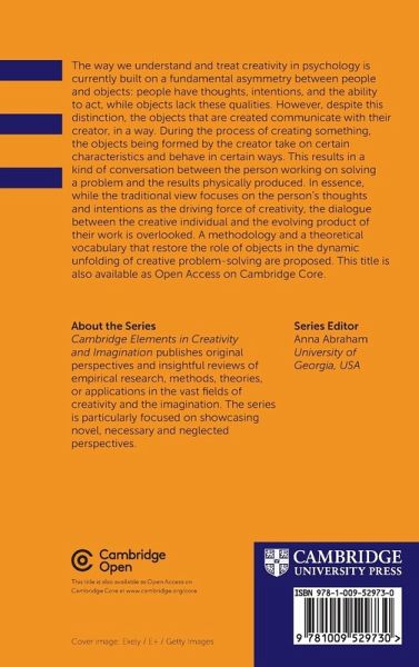 The way we understand creativity in psychology is built on a fundamental asymmetry between people and objects: people have thoughts, intentions, and the ability to act, while objects lack these qualities. However, despite this distinction, objects that are created communicate with their creator. During the process of creation, objects being formed by the creator take on certain characteristics and behave in certain ways, resulting in a kind of conversation between the person working on solving a problem and the results physically produced. In essence, while the traditional view focuses on the person's thoughts and intentions as the driving force of creativity, the dialogue between the creative individual and the evolving product of their work is overlooked. This Element proposes a methodology and theoretical vocabulary that restore the role of objects in the dynamic unfolding of creative problem solving. This title is also available as Open Access on Cambridge Core.
