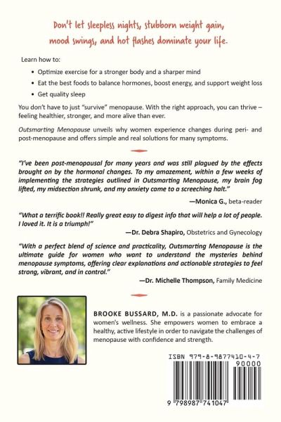 Feeling like a stranger in your own body? You're not alone-and you don't have to stay stuck. In Outsmarting Menopause, Dr. Brooke Bussard shares a fun, refreshing approach to managing menopause symptoms and preventing the chronic diseases that hormonal changes can exacerbate. Once the ovaries retire and estrogen receptors decline, the body undergoes major shifts: muscle loss, weight gain, sleep issues, mood changes, and more. But menopause doesn't have to mean misery. Through real conversations with women navigating midlife changes, you'll uncover strategies to thrive-covering everything from sleep and nutrition to bone health, brain health, and fitness. Inside, you'll discover how to:Break the cycle of stress, cortisol, and stubborn weight gain Adapt your workouts to build muscle and burn fat more effectively Improve sleep, lift your mood, and boost brain health with simple daily shifts Menopause isn't the end--it's a new beginning. If you're ready to feel strong, clear, and confident again, this book will show you how.