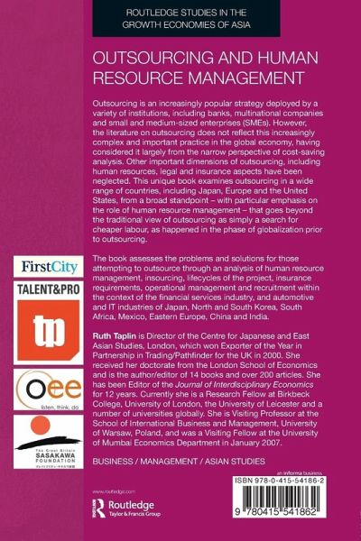 Outsourcing is an increasingly popular strategy deployed by a variety of institutions, including banks, multinational companies and small and medium-sized enterprises (SMEs). The book assesses the problems and solutions for those attempting to outsource through an analysis of human resource management, insourcing, lifecycles of the project, insurance requirements, operational management and recruitment within the context of the financial services industry, automotive and IT industries of Japan, North and South Korea, South Africa, Mexico, Eastern Europe, China and India. Including detailed comparative case studies, this book: considers how outsourcing can best be made to work explores the human side of outsourcing offers practical advice for improving organizational relationships and performance looks at important practices such as insourcing provides much needed analysis of the risk and insurance issues involved in outsourcing.