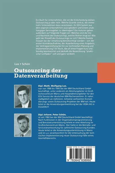 Ein Buch für Unternehmen, die vor der Entscheidung stehen: Outsourcing ja oder nein. Welche Gründe sind es, die immer mehr Unternehmen dazu veranlassen, ihr EDV-System aus dem eigenen Unternehmen auszugliedern und einem unabhängigen Servicegeber zu übertragen? Die Autoren gehen außerdem auf folgende Fragen ein: Welches sind die Vor- und Nachteile des Outsourcings, welche Risiken birgt es? Wie geht der Prozeß des Outsourcings vor sich? Welche Punkte müssen bei der Umsetzung berücksichtigt werden - bei der ersten Kontaktaufnahme, der Ausarbeitung eines Angebots, der Vertragserstellung bis hin zur technischen Planung und Implementierung? Ein Buch, das all diese Fragen kurz und bündig beantwortet und deshalb die Bezeichnung "praktischer Leitfaden" voll und ganz verdient.