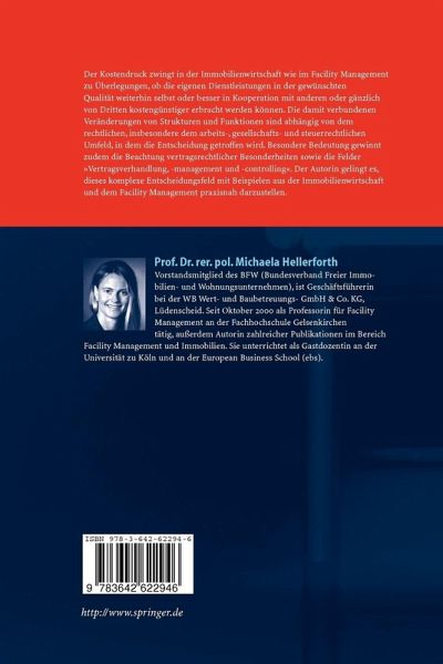 Professor Dr. rer.pol. Michaela Hellerforth ist Vorstandsmitglied des BFW (Bundesverband Freier Immobilien- und Wohnungsunternehmen), ist Geschäftsführerin bei der WB Wert- und Baubetreuuungs- GmbH; Co.KG, Lüdenscheid. Seit Oktober 2000 ist sie als Professorin für Facility Management an der Fachhochschule Gelsenkirchen tätig, außerdem Autorin zahlreicher Publikationen im Bereich Facility Management und Immobilien. Sie unterrichtet als Gastdozentin an der Universität zu Köln und an der European Business School (ebs).