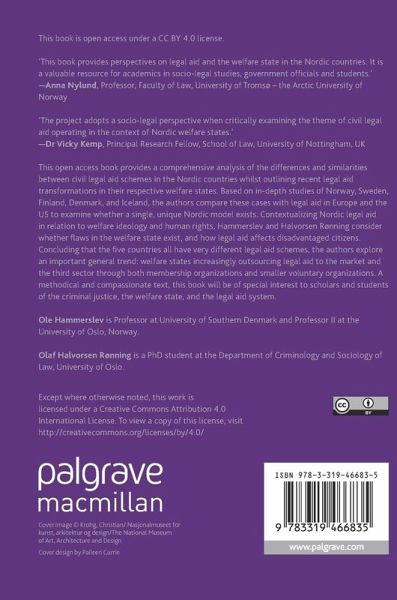 This edited collection provides a comprehensive analysis of the differences and similarities between civil legal aid schemes in the Nordic countries whilst outlining recent legal aid transformations in their respective welfare states. Based on in-depth studies of Norway, Sweden, Finland, Denmark, and Iceland, the authors compare these cases with legal aid in Europe and the US to examine whether a single, unique Nordic model exists. Contextualizing Nordic legal aid in relation to welfare ideology and human rights, Hammerslev and Halvorsen Rønning consider whether flaws in the welfare state exist, and how legal aid affects disadvantaged citizens. Concluding that the five countries all have very different legal aid schemes, the authors explore an important general trend: welfare states increasingly outsourcing legal aid to the market and the third sector through both membership organizations and smaller voluntary organizations. A methodical and compassionate text, this book will be of special interest to scholars and students of the criminal justice, the welfare state, and the legal aid system.