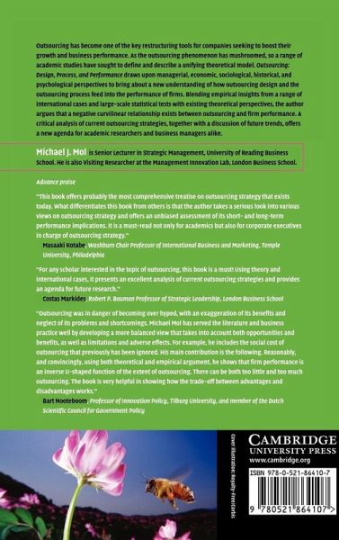 Outsourcing has become one of the key restructuring tools for companies seeking to boost their growth and business performance. As the outsourcing phenomenon has mushroomed, so a range of academic studies have sought to define and describe a unifying theoretical model. Outsourcing: Design, Process and Performance draws upon managerial, economic, sociological, historical and psychological perspectives to bring about a new understanding of how outsourcing design and the outsourcing process feed into the performance of firms. Blending empirical insights from a range of international cases and large-scale statistical tests with existing theoretical perspectives, the author argues that a negative curvilinear relationship exists between outsourcing and firm performance. A critical analysis of current outsourcing strategies, together with a discussion of future trends, offers a new agenda for academic researchers and business managers alike.