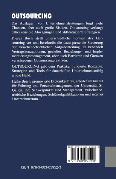 Die Autorin präsentiert unterschiedliche Formen des Outsourcing mit der jeweils passenden Steuerung zwischenbetrieblicher Aufgabenteilung. Sie stützt sich dabei auf eine Auswertung der aktuellen europäischen und US-amerikanischen Managementliteratur sowie auf eine Befragung von rund 50 Führungskräften und Beratern deutscher Unternehmen.