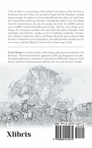 "Over In Asia" is a recounting of the author's two trips to Asia: the first to Southeast Asia and China, the second to Nepal and the Himalaya, totaling about 6 months. It is plain to see how vastly different these places are - both from the United States and from each other - through the author's eyes. Everything from the infrastructure, the art, the people, the food, the wildlife and the not so wildlife reveal undeniable proof of this. And yet, some things never change. It's a humorous narrative and only reflects the author's thoughts - both immediate and reflective - of places such as Thailand, Cambodia, Vietnam, Laos, Malaysia, Indonesia, China, and Nepal. Along the way we discover that karaoke is awkward in every hemisphere, that bull genitalia should never be on a menu, and that hiking to Mount Everest Basecamp is hard.
