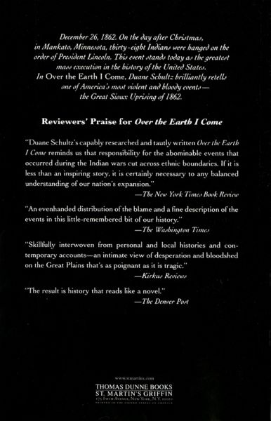 December 26, 1862. On the day after Christmas, in Mankato, Minnesota, thirty-eight Indians were hanged on the order of President Lincoln. This event stands today as the greatest mass execution in the history of the United States. In Over The Earth I Come, Duane Schultz brilliantly retells one of America's most violent and bloody events--the Great Sioux Uprising of 1862.