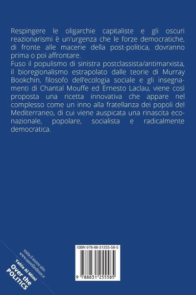 Respingere le oligarchie capitaliste e gli oscuri reazionarismi è un'urgenza che le forze democratiche, di fronte alle macerie della post-politica, dovranno prima o poi affrontare.Fuso il populismo di sinistra postclassista/antimarxista, il bioregionalismo estrapolato dalle teorie di Murray Bookchin, filosofo dell'ecologia sociale e gli insegnamenti di Chantal Mouffe ed Ernesto Laclau, viene così proposta una ricetta innovativa che appare nel complesso come un inno alla fratellanza dei popoli del Mediterraneo, di cui viene auspicata una rinascita econazionale, popolare, socialista e radicalmente democratica.