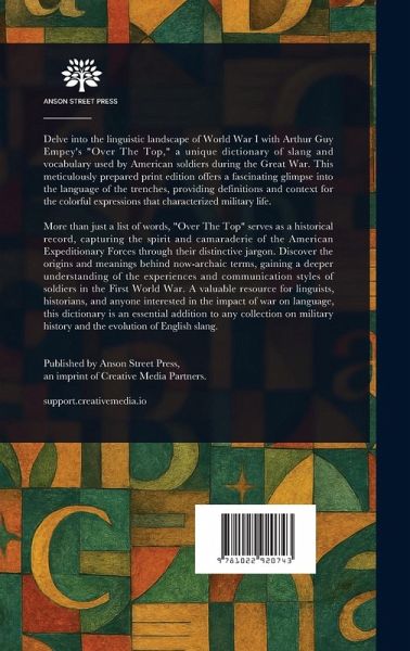 Delve into the linguistic landscape of World War I with Arthur Guy Empey's "Over The Top," a unique dictionary of slang and vocabulary used by American soldiers during the Great War. This meticulously prepared print edition offers a fascinating glimpse into the language of the trenches, providing definitions and context for the colorful expressions that characterized military life. More than just a list of words, "Over The Top" serves as a historical record, capturing the spirit and camaraderie of the American Expeditionary Forces through their distinctive jargon. Discover the origins and meanings behind now-archaic terms, gaining a deeper understanding of the experiences and communication styles of soldiers in the First World War. A valuable resource for linguists, historians, and anyone interested in the impact of war on language, this dictionary is an essential addition to any collection on military history and the evolution of English slang. This work has been selected by scholars as being culturally important, and is part of the knowledge base of civilization as we know it. This work is in the public domain in the United States of America, and possibly other nations. Within the United States, you may freely copy and distribute this work, as no entity (individual or corporate) has a copyright on the body of the work. Scholars believe, and we concur, that this work is important enough to be preserved, reproduced, and made generally available to the public. We appreciate your support of the preservation process, and thank you for being an important part of keeping this knowledge alive and relevant.