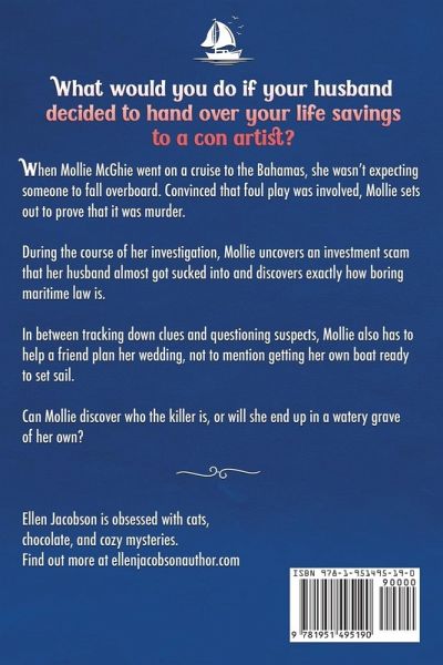 What would you do if your husband decided to hand over your life savings to a con artist? When Mollie McGhie went on a cruise to the Bahamas, she wasn't expecting someone to fall overboard. Convinced that foul play was involved, Mollie sets out to prove that it was murder. During the course of her investigation, Mollie uncovers an investment scam that her husband almost got sucked into and discovers exactly how boring maritime law is. In between tracking down clues and questioning suspects, Mollie also has to help a friend plan her wedding, not to mention getting her own boat ready to set sail. Can Mollie discover who the killer is, or will she end up in a watery grave of her own? Overboard on the Ocean is the sixth book in the Mollie McGhie Cozy Sailing Mystery series. If you like quirky characters, adorable cats, and loads of chocolate, you'll love this cozy mystery. Spoiler Alert: You'll be humming "Here Comes the Bride" by the time you're finished reading! The Mollie McGhie series is now complete. Each book can be read as a standalone, but you might have more fun if you read them in order. -Robbery at the Roller Derby (prequel novella) -Murder at the Marina -Bodies in the Boatyard -Poisoned by the Pier -Buried by the Beach (short story) -Dead in the Dinghy -Shooting by the Sea -Overboard on the Ocean -Murder aboard the Mistletoe (Christmas novella)