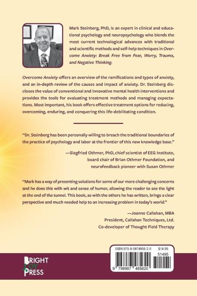 Overcome Anxiety offers an overview of the ramifications and types of anxiety, and an in-depth review of the causes and impact of anxiety. Dr. Steinberg discloses the value of conventional and innovative mental health interventions and provides the tools for evaluating treatment methods and managing expectations. Most important, this book offers effective treatment options for reducing, overcoming, enduring, and conquering this life-debilitating condition.