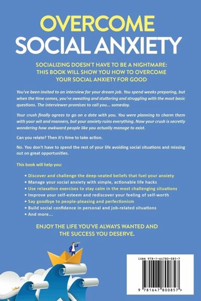 Socializing Doesn't Have To Be A Nightmare: This Book Will Show You How To Overcome Your Social Anxiety For Good You've been invited to an interview for your dream job. You spend weeks preparing, but when the time comes, you're sweating and stuttering and struggling with the most basic questions. The interviewer promises to call you... someday. Your crush finally agrees to go on a date with you. You were planning to charm them with your wit and manners, but your anxiety ruins everything. Now your crush is secretly wondering how awkward people like you actually manage to exist. Can you relate? Then it's time to take action. Otherwise, your social anxiety disorder will continue robbing you of personal happiness and life-changing career opportunities. But what is social anxiety disorder, and what can you do to manage it? Social anxiety disorder (also known as social phobia) is not "just shyness". It's the third most common mental disorder in the United States, affecting at least 7% of the population, and it can really undermine your overall well-being. In severe cases, even everyday tasks like going to a grocery store can be a challenge. Social anxiety is physically and emotionally draining. You may spend days and weeks worrying about a particularly awkward situation, and all that stress is taking a physical toll on your body, causing headaches, digestive issues, unexplained pain, and high blood pressure. Constant exposure to stress hormones also weakens your immune system, leaving you vulnerable to infections. Are you doomed now? No. You don't have to spend the rest of your life avoiding social situations and missing out on great opportunities. You can manage your social anxiety with medications, therapy sessions, and simple daily exercises that are part of CBT, or cognitive behavioral therapy. This book by acclaimed anxiety coach Derick Howell will show you the EXACT steps you need to take. This book will help you:Discover and challenge the deep-seated beliefs that fuel your anxiety Manage your social anxiety with simple, actionable life hacks Use relaxation exercises to stay calm in the most challenging situations Improve your self-esteem and rediscover your feeling of self-worth Say goodbye to people-pleasing and perfectionism Build social confidence in personal and job-related situations Overcome social anxiety and never miss an opportunity again! The best anxiety management exercises take just a few minutes, so they won't overburden your busy schedule. Stay consistent and work with this book every day, and you'll feel your anxiety diminish in a matter of days! Continue doing the exercises and you'll regain complete control over your anxiety. You'll no longer avoid social situations. You'll ace your job interviews, you'll network like a pro, and you'll charm people with your natural confidence. You'll enjoy the life you've always wanted and the success you deserve. And this life-changing transformation is just a click away.Scroll up, click the "Buy Now with 1-Click" button and Get Your Copy Now!