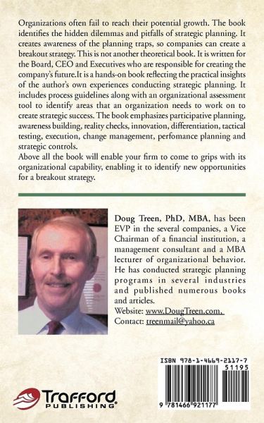 Organizations often fail to reach their potential growth. The book identifies the hidden dilemmas and pitfalls of strategic planning. It creates awareness of the planning traps, so companies can create a breakout strategy. This is not another theoretical book. It is written for the Board, CEO and Executives who are responsible for creating the company's future.It is a hands-on book reflecting the practical insights of the author's own experiences conducting strategic planning. It includes process guidelines along with an organizational assessment tool to identify areas that an organization needs to work on to create strategic success. The book emphasizes participative planning, awareness building, reality checks, innovation, differentiation, tactical testing, execution, change management, perfomance planning and strategic controls. Above all the book will enable your firm to come to grips with its organizational capability, enabling it to identify new opportunities for a breakout strategy.