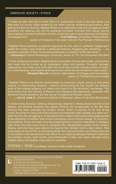 Foreword: Martin E. Marty Part I America and the Problem of Modernity Chapter 1: Worldview, Choice, and Dialogue Chapter 2 Ideologues, Nihilists, and the Depressed - and Relationalists Chapter 3 Moral Disease and Nothingness: Chapter 4 Nothingness and Gift: Eleven Glimpses Part II Relational Worldview Chapter 5 Reappropriating Tradition Chapter 6 Dialogue as Democratic Possibility: Reappropriating the Modern Chapter 7 What We Can Learn From/With China Chapter 8 Dialogue, Development, and Pluralism Part III Reviving Civic Virtue Chapter 9 A Liberal Confession Chapter 10 American Clash and Revival Chapter 11 Pragmatism Revisited Chapter 12 Democratic Life, American Hope: A Meditation on/from the Practical Turn Chapter 13 Liberal Education as Democratic Practice Conclusion: Democracy Somewhere