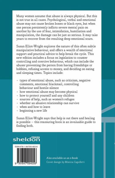 Many women assume that abuse is always physical. But this is not always the case. Psychological, verbal and emotional abuse may not cause broken bones or black eyes, but when one person persistently inflicts sever mental pain on another by the use of fear, intimidation, humiliation and manipulation, the damage can be just as serious. The resulting deep emotional scars may take years to recover from. Susan Elliot-Wright explores the nature of this often subtle manipulative behaviour and what can be done to break the cycle. As well as offering emotional support, the author looks at the practicalities that may be involved, such as consulting a solicitor or gaining access to benefits. Subjects covered include: types of emotional abuse; who may be a victim, and why; how to protect yourself and any children; sources of help such as women's refuges; can an abusive relationship survive?; helping the abuser; forming a new life.
