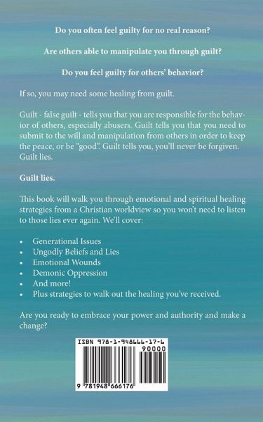 Do you often feel guilty for no real reason? Are others able to manipulate you through guilt? Do you feel guilty for others’ behavior? If so, you may need some healing from guilt. Guilt - false guilt - tells you that you are responsible for the behavior of others, especially abusers. Guilt tells you that you need to submit to the will and manipulation from others in order to keep the peace, or be "good". Guilt tells you, you’ll never be forgiven. Guilt lies. This book will walk you through emotional and spiritual healing strategies from a Christian worldview so you won’t need to listen to those lies ever again. We’ll cover: Generational Issues Ungodly Beliefs and Lies Emotional Wounds Demonic Oppression And more! Plus strategies to walk out the healing you’ve received. Are you ready to embrace your power and authority and make a change? Click the button to get your copy of Overcoming Guilt now. Note: Each book in this series utilizes the same tools, but is tailored to each topic.