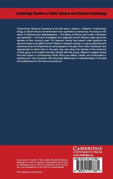 1. Land reconciliation and theories of justice, past and present 2. Naming, blaming, and claiming on historical land injustices: the views of the South African people 3. Group identities and land policy preferences 4. Applied justice judgments: the problem of squatting 5. Judging the past: historical versus contemporary claims to land 6. Land reconciliation and theories of justice References Appendix A. A note on race in South Africa Appendix B. The survey methodology Appendix C. The questionnaire.
