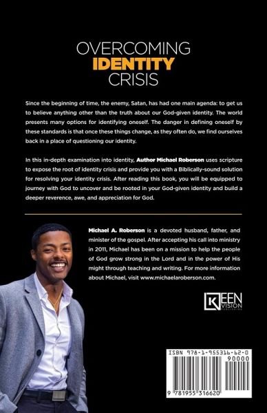 Since the beginning of time, the enemy, Satan, has had one main agenda: to get us to believe anything other than the truth about our God-given identity. The world presents many options for identifying oneself. The danger in defining oneself by these standards is that once these things change, as they often do, we find ourselves back in a place of questioning our identity. In this in-depth examination into identity, Author Michael Roberson uses scripture to expose the root of identity crisis and provide you with a Biblically-sound solution for resolving your identity crisis. After reading this book, you will be equipped to journey with God to uncover and be rooted in your God-given identity and build a deeper reverence, awe, and appreciation for God.