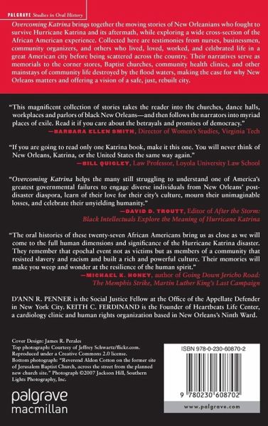 "The story of Katrina and its aftermath have been told in many literary venues and through many genres. But no book has told the story as plainly and as painfully asOvercoming Katrina. Through the words of the twenty-seven men and women, ranging in age from the very old to those in their twenties, come straightforward and genuine stories of Katrina survivors. These narratives perform one of history s most important functions: to acknowledge the reality of experience.Overcoming Katrinaforces its readers to acknowledge the ugly truth of the ordeal of Katrina and to appreciate the amazing beauty of the survivors resilience, tenacity, and faith as they try to rebuild their lives and their city." - The Huffington Post