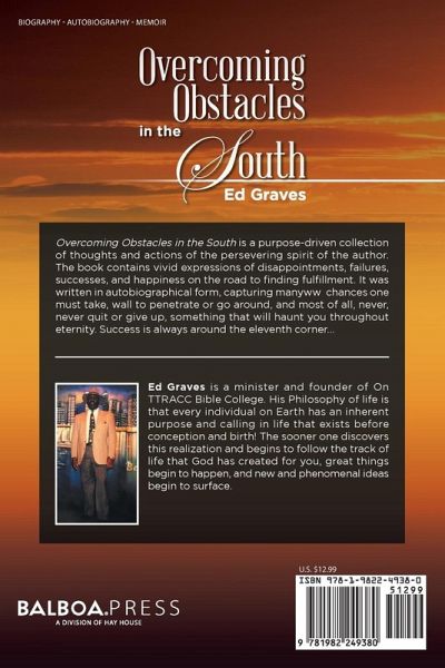 Overcoming Obstacles in the South is a purpose-driven collection of thoughts and actions of the persevering spirit of the author. The book contains vivid expressions of disappointments, failures, successes, and happiness on the road to finding fulfillment. It was written in autobiographical form, capturing many chances one must take, wall to penetrate or go around, and most of all, never, never quit or give up, something that will haunt you throughout eternity. Success is always around the eleventh corner...