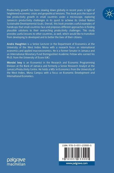 Productivity growth has been slowing down globally in recent years in light of heightened economic crises and geopolitical tensions. This book puts the issue of low productivity growth in small countries under a microscope, exploring Jamaica's productivity challenges in its quest to achieve its United Nation Sustainable Developmental Goals. Overall, this book provides useful examples of handicaps that small countries face and proposes different approaches in finding plausible solutions to their overarching productivity challenges. This study provides useful lessons to other countries, as well, which would like to transition from developing to developed and to better the lives of their citizens.
