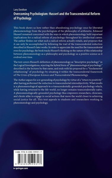 This book shows us how rather than abandoning psychology once he liberated phenomenology from the psychologism of the philosophy of arithmetic, Edmund Husserl remained concerned with the ways in which phenomenology held important implications for a radical reform of psychology throughout his intellectual career. The author fleshes out what such a radical reform actually entails, and proposes that it can only be accomplished by following the trail of the transcendental reduction described in Husserl's later works. In order to appreciate the need for the transcendental even for psychology, the book tracks Husserl's thinking on the nature of this relationship between phenomenology as a philosophy and psychology as a positive science as it evolved over time.