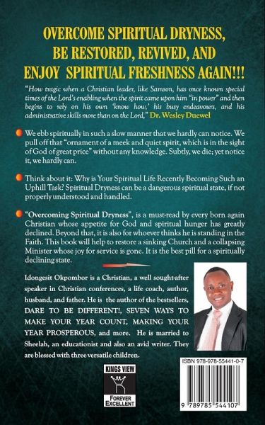 OVERCOME SPIRITUAL DRYNESS, BE RESTORED, REVIVED, AND ENJOY SPIRITUAL FRESHNESS AGAIN!!! "How tragic when a Christian leader, like Samson, has once known special times of the Lord's enabling when the spirit came upon him "in power" and then begins to rely on his own 'know-how,' his busy endeavours, and his administrative skills more than on the Lord," Dr. Wesley Duewel We ebb spiritually in such a slow manner that we hardly can notice. We pull off that "ornament of a meek and quiet spirit, which is in the sight of God of great price" without any knowledge. Subtly, we die; yet notice it, we hardly can. Think about it: Why is Your Spiritual Life Recently Becoming Such an Uphill Task? Spiritual Dryness can be a dangerous spiritual state, if not properly understood and handled. ¿ "Overcoming Spiritual Dryness" is a must-read for every born-again Christian whose appetite for God and spiritual hunger has greatly declined. But apart from those who are on the verge of collapse, it is also for whoever thinks he is standing in the Faith. ¿ This book will help to restore a sinking Church and a collapsing Minister whose joy for service is gone. He has been struggling daily to live right, without taking time to deliberate or prepare himself for the benefit of the flock. ¿ When personal needs and demands overtake the Ministerial mind; when Christians measure success by worldly standards; when decisions for spiritual things are looked at, judged, and considered by sight and not by faith; then of a truth, a state of DRYNESS has set in. ¿ When God is only given a second and not a first place, then, one must accept the truth and quickly seek restoration and refreshing. Read this book! It is the best pill for a spiritually declining state. But it must never stop with you only...get others to get it and read.