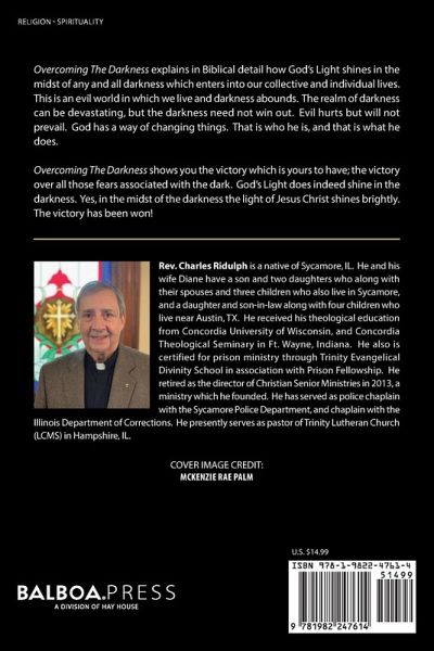 Overcoming The Darkness explains in Biblical detail how God's Light shines in the midst of any and all darkness which enters into our collective and individual lives. This is an evil world in which we live and darkness abounds. The realm of darkness can be devastating, but the darkness need not win out. Evil hurts but will not prevail. God has a way of changing things. That is who he is, and that is what he does. Overcoming The Darkness shows you the victory which is yours to have; the victory over all those fears associated with the dark. God's Light does indeed shine in the darkness. Yes, in the midst of the darkness the light of Jesus Christ shines brightly. The victory has been won!