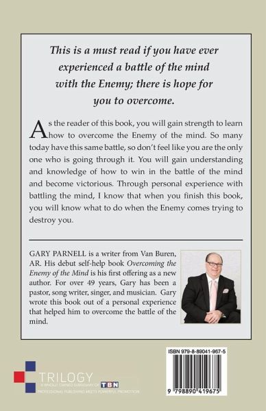 This is a must read if you have ever experienced a battle of the mind with the Enemy; there is hope for you to overcome. As the reader of this book, you will gain strength to learn how to overcome the Enemy of the mind. So many today have this same battle, so don't feel like you are the only one who is going through it. You will gain understanding and knowledge of how to win in the battle of the mind and become victorious. Through personal experience with battling the mind, I know that when you finish this book, you will know what to do when the Enemy comes trying to destroy you.