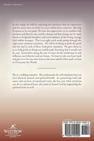 In this study, we will be exploring the emotions that we experience and the many ways in which we react within those emotions, allowing Scripture to be our guide. We have the opportunity to be truthful with ourselves and discover the need for change and that change can be made based on Scriptural discipline and contemplation of the loving message held within its pages. This is an eight-week study going through the eight most common emotions. We will be looking at both the good and the bad in each of these God given emotions. He gave them to us to help guide us along our earthly path, knowing that it would not be easy. Somewhere along the way we have let the world step in and influence our behavior and our hearts. It's time to take our heart back and give it to the one who loves us the most and let Him teach us how to Overcome the World.