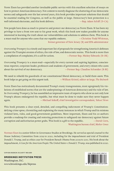 Ambassador Norman Eisen (ret.) is a senior fellow in Governance Studies at Brookings and a CNN Legal Analyst. He served as special counsel to the House Judiciary Committee for the first impeachment and trial of President Trump, and as President Obama's ethics czar and ambassador to the Czech Republic.
