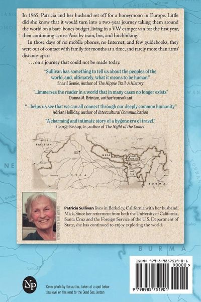 As they drove through the hot flat Iraqi desert, Patricia looked over at her husband. He was guzzling water; sweat was running down his neck; the outside temperature was way over 100; and their 1963 VW camper van had no air conditioning. "Yikes," she thought. "This is not how I pictured our honeymoon." It was August of 1966. They had gone to Europe the previous summer after their wedding, and that trip had stretched into a two-year adventure that took them around the world on a bare-bones budget. In those days with no mobile phones, no Internet, and limited maps, they were out of contact with…mehr