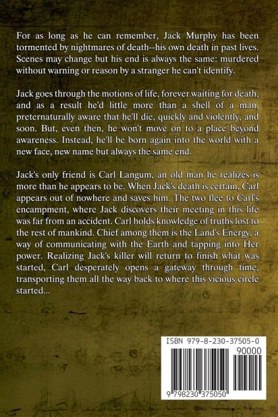 For as long as he can remember, Jack Murphy has been tormented by nightmares of death--his own death in past lives. Scenes may change but his end is always the same: murdered without warning or reason by a stranger he can't identify. Jack goes through the motions of life, forever waiting for death, and as a result he'd little more than a shell of a man, preternaturally aware that he'll die, quickly and violently, and soon. But, even then, he won't move on to a place beyond awareness. Instead, he'll be born again into the world with a new face, new name but always the same end. Jack's only friend is Carl Langum, an old man he realizes is more than he appears to be. When Jack's death is certain, Carl appears out of nowhere and saves him. The two flee to Carl's encampment, where Jack discovers their meeting in this life was far from an accident. Carl holds knowledge of truths lost to the rest of mankind. Chief among them is the Land's Energy, a way of communicating with the Earth and tapping into Her power. Realizing Jack's killer will return to finish what was started, Carl desperately opens a gateway through time, transporting them all the way back to where this vicious circle started...