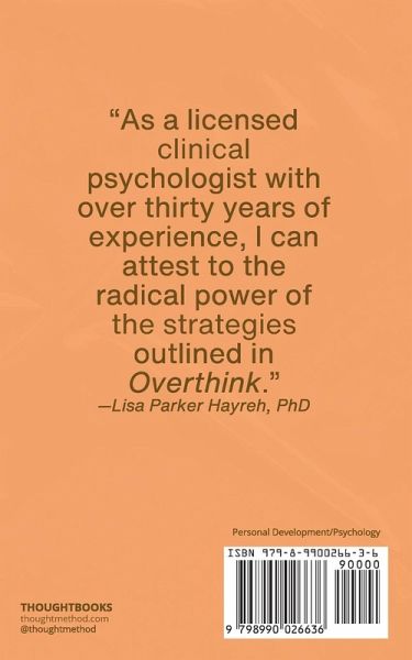 Overwhelmed by constant mental chatter? Tried everything to quiet your mind but nothing works? Overthink offers innovative strategies to help you silence mental noise and regain control of your thoughts. Instead of shutting them down, you'll learn to think in a way that truly serves you. Drawing on a decade of research and insights from hundreds of overthinkers, this practical guide explains why common advice often falls short and provides a smarter approach to calm, effective thinking. With relatable examples and hands-on techniques, Overthink delivers valuable insights on every page, including: ¿How your thoughts and unconscious mind work ¿The unproductive thoughts that keep you stuck ¿A simple three-step method to reclaim your mind ¿Ways to build confidence and a growth mindset ¿Practical strategies to increase your success This isn't just about silencing your thoughts. It's about transforming them into a powerful tool for clarity, confidence, and purposeful action. Overthink isn't just a book; it's a roadmap to a calmer, sharper, and more empowered mind.