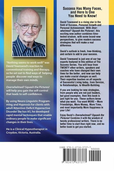Overwhelmed? Squash The Pictures! comes from a therapist and trainer who wanted methods to help people that actually wortked. His breakthrough came when he was diagnosed with ADHD and realized where the blocks were, not only for people like him, but for most of the people who were struggling. He created ways that could be learned and used by ordinary people that were fast and effective. Squash The Pictures will help you gain control and feel great doing it.