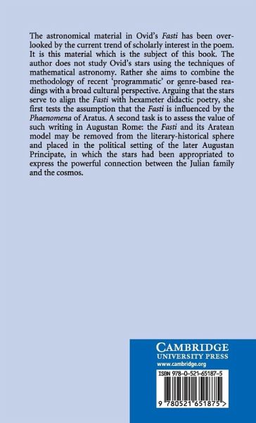 The astronomical material in Ovid's Fasti has been overlooked. It is this material which is the subject of this book.