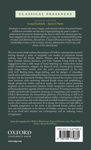 This innovative study analyses the presence of Ovid in contemporary women's writing through a series of insightful case studies of prominent female authors, from Ali Smith, Marina Warner, and Marie Darrieussecq, to Alice Oswald, Saviana Stãnescu, and Yoko Tawada. Using Ovid in their engagements with a wide range of issues besetting our twenty-first century world - homelessness, refugees, the financial crisis, internet porn, anorexia, body image - these writers echo the poet's preoccupation in his own work with fleeting fame, shape-shifting, and the dangers of immediate gratification, and make evident that these concerns are not only quintessentially modern, but also peculiarly Ovidian. Moving beyond the concern of second-wave feminism with recovering silenced female voices and establishing a female perspective within canonical works, the volume places particular emphasis on the intersections between Ovid's imaginative universe and the political and aesthetic agenda of third-wave feminism. Focusing on its subjects' socially and politically charged re-shapings, re-imaginings, and receptions of Ovid, it not only demonstrates the extraordinary plasticity of his writing, but also of its myriad re-castings and re-contextualizations within contemporary culture (in terms of genre alone, the works discussed included translations, poetry, plays, novels, short stories, and memoirs). In so doing, it not only offers us a valuable perspective on the work of the selected female authors and a new and vital landmark in the history of Ovidian reception, but also reveals to us an Ovid who remains our contemporary and an enduring source of inspiration.