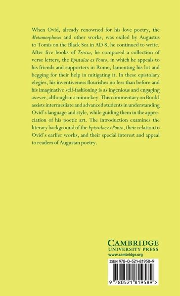 When Ovid, already renowned for his love poetry, the Metamorphoses and other works, was exiled by Augustus to Tomis on the Black Sea in AD 8, he continued to write. After five books of Tristia, he composed a collection of verse letters, the Epistulae ex Ponto, in which he appeals to his friends and supporters in Rome, lamenting his lot and begging for their help in mitigating it. In these epistolary elegies his inventiveness flourishes no less than before and his imaginative self-fashioning is as ingenious and engaging as ever, although in a minor key. This commentary on Book I assists intermediate and advanced students in understanding Ovid's language and style, while guiding them in the appreciation of his poetic art. The introduction examines the literary background of the Epistulae ex Ponto, their relation to Ovid's earlier works, and their special interest and appeal to readers of Augustan poetry.