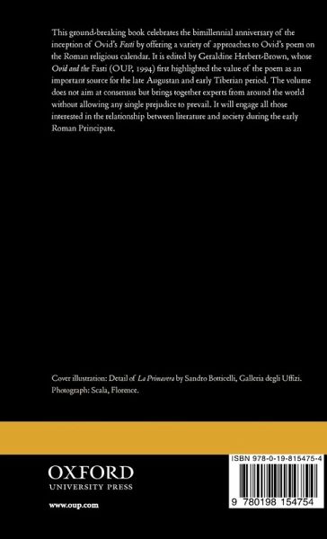 This ground-breaking book celebrates the bimillennial anniversary of the inception of Ovid's Fasti by offering a variety of approaches to Ovid's poem on the Roman religious calendar. The volume does not aim at consensus but brings together experts from around the world without allowing any single prejudice to prevail.