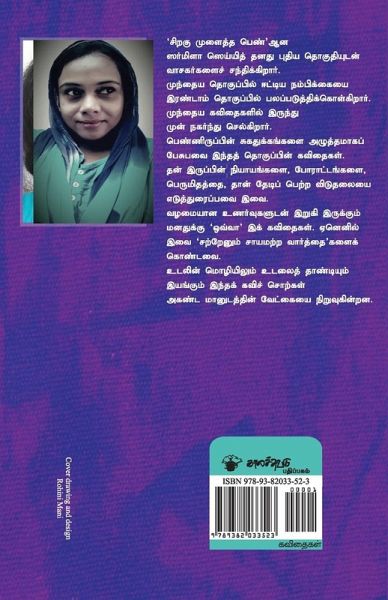 Poet, Novelist Sharmila seyyid's second poetry collection. The hopes she revised with the first poetry collection are strengthened with this second volume. The poems talk of the various shades of feminine existence. She talks with pride of her reasons, struggles and the freedom, the freedom that wasn't given to her but one she achieved.These poems break the minds hardened with clichéd emotions with their honest words. They talk in the language of body and beyond it.