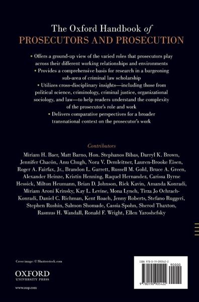 The power of the modern prosecutor arises from several features of the criminal justice landscape: widespread use of law and order political rhetoric and heightened fear of crime among voters; legislatures' embrace of extreme sentencing ranges to respond to such concerns; and the uncertain or limited accountability of prosecutors to the electorate, the bar, or other political and professional constituencies. The convergence of these trends has transformed prosecution into an indispensable field of study. This volume brings together the work of leading international scholars across criminology, sociology, political science, and law - along with contributions from reform-minded practitioners - to examine a variety of issues in prosecutorial behaviour and the institutional structures that frame their behavior. The Handbook connects the dots among existing theoretical and empirical research related to prosecutors. Major sections of the volume cover (1) prosecutor performance during distinct phases of a criminal case, (2) the features of the prosecutor's environment, both inside the office and external to the office, that influence the choices of individual prosecutors and office leaders, and (3) prosecutorial strategies and priorities when dealing with specialized types of crimes, victims, and defendants. Taken together, the chapters in this volume identify the founding texts, discuss leading theoretical and methodological approaches, explain the scope of unresolved issues, and preview where this field is headed. The volume provides a bottom-up view of an important new scholarly field.