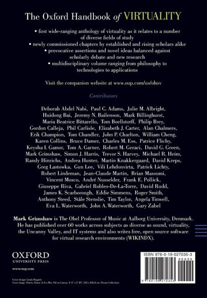 Our conceptualizations and applications of virtuality are multiple, as contributors demonstrate across the nine sections of the book that move from philosophy to technologies and applications before returning to philosophy again for a discussion of the utopias and dystopias of virtuality. The almost 50 essays contained within range freely across subjects that include the potential of virtuality, ethics, virtuality and self, presence and immersion, virtual emotions, image, sound and literature,