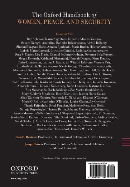 Passed in 2000, the United Nations Security Council Resolution 1325 and subsequent seven Resolutions make up the Women, Peace, and Security (WPS) agenda. This agenda is a significant international normative and policy framework addressing the gender-specific impacts of conflict on women and girls, including protection against sexual and gender-based violence, promotion of women's participation in peace and security processes, and support for women's roles as peace builders in the prevention of conflict and rebuilding of societies after conflict. Implementation within and across states and international organizations - and within peace and security operations - has been slow despite significant transnational advocacy in support of the WPS agenda. The Oxford Handbook of Women, Peace, and Security brings together scholars, advocates, and policymakers to provide an overview of what we know concerning what works to promote women's participation in peace and security, what works to protect women and girls from sexual and gender-based violence and other human rights violations, and what works to prevent conflict drawing on women's experiences and knowledge of building peace from local to global levels. Just as importantly, it addresses the gaps in knowledge on and the future direction of scholarship on WPS. The Handbook particularly aims to build on the findings from the 2015 Global Study of Resolution 1325, commissioned by the UN-Secretary General. Over the course of six sections, the Handbook addresses the concepts and early history behind WPS; the theory and practice of WPS; international institutions involved with the WPS agenda; the implementation of WPS in conflict prevention, peace operations, peace building, arms control, human-rights protection, and protection of civilians; connections between WPS and other UN resolutions and agendas; and the ongoing and future challenges of WPS.