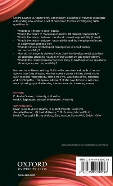 Oxford Studies in Agency and Responsibility is a series of volumes presenting outstanding new work on a set of connected themes, investigating such questions as: DT What does it mean to be an agent? DT What is the nature of moral responsibility? Of criminal responsibility? What is the relation between moral and criminal responsibility (if any)? DT What is the relation between responsibility and the metaphysical issues of determinism and free will? DT What do various psychological disorders tell us about agency and responsibility? DT How do moral agents develop? How does this developmental story bear on questions about the nature of moral judgment and responsibility? DT What do the results from neuroscience imply (if anything) for our questions about agency and responsibility? No one has written more insightfully on the promises and perils of human agency than Gary Watson, who has spent a career thinking about issues such as moral responsibility, blame, free will, weakness of will, addiction, and psychopathy. This special edition of OSAR pays tribute to Watson's work by taking up and extending themes from his pioneering essays.