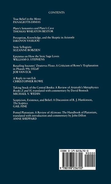 The latest installment of this annual publication includes original articles, often of substantial length, and review articles on major books. Contributors include Panagiotis Dimas, Thomas Wheeton Bestor, Iakovos Vasiliou, Susanne Bobzien, William O. Stephens, Job Van Eck, Christopher Rowe, Michael V. Wedin, Gail Fine, and Anne Sheppard.