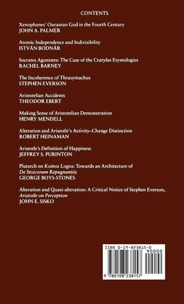 'This ... annual collection ... has become standard reading among specialists in ancient philosophy ... Oxford Studies in Ancient Philosophy continues to reflect the vigour of a challenging but vital sub-discipline within Classical Studies and Philosophy.' Brad Inwood, Bryn Mawr Classical Review