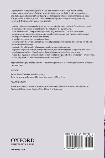 Oxford Studies in Epistemology is a biennial publicaton which offers a regular snapshot of state-of-the-art work in this important field. Under the guidance of a distinguished editorial board composed of leading philosophers in North America, Europe and Australasia, it will publish exemplary papers in epistemology, broadly construed. Topics within its purview include: *traditional epistemological questions concerning the nature of belief, justification, and knowledge, the status of scepticism, the nature of the a priori, etc; *new developments in epistemology, including movements such as naturalized epistemology, feminist epistemology, social epistemology, and virtue epistemology, and approaches such as contextualism; *foundational questions in decision-theory; *confirmation theory and other branches of philosophy of science that bear on traditional issues in epistemology; *topics in the philosophy of perception relevant to epistemology; *topics in cognitive science, computer science, developmental, cognitive, and social psychology that bear directly on traditional epistemological questions; and *work that examines connections between epistemology and other branches of philosophy, including work on testimony and the ethics of belief. Anyone wanting to understand the latest developments at the leading edge of the discipline can start here.