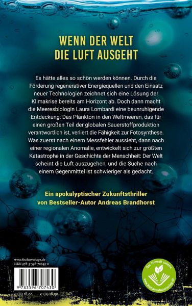 Doch dann macht die Meeresbiologin Laura Lombardi eine beunruhigende Entdeckung: Das Plankton in den Weltmeeren, das für einen großen Teil der globalen Sauerstoffproduktion verantwortlich ist, verliert die Fähigkeit zur Fotosynthese. Was zuerst nach einem Messfehler aussieht, dann nach einer regionalen Anomalie, entwickelt sich zur größten Katastrophe in der Geschichte der Menschheit: Der Welt scheint die Luft auszugehen, und Suche nach einem Gegenmittel ist schwieriger als gedacht.