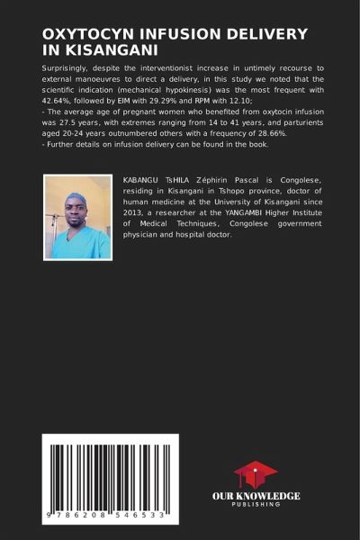 Surprisingly, despite the interventionist increase in untimely recourse to external manoeuvres to direct a delivery, in this study we noted that the scientific indication (mechanical hypokinesis) was the most frequent with 42.64%, followed by EIM with 29.29% and RPM with 12.10;- The average age of pregnant women who benefited from oxytocin infusion was 27.5 years, with extremes ranging from 14 to 41 years, and parturients aged 20-24 years outnumbered others with a frequency of 28.66%.- Further details on infusion delivery can be found in the book.